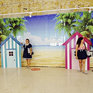 Cuatro alocados y divertidos bañistas, a modo de “domingueros” con sendos bañadores a rayas llevan la playa a cualquier rincón de la geografía, con un refrescante baño de canciones, historias, y juegos. Un divertido chapuzón, en el que el mar, la playa y la música son los auténticos protagonistas. Los cuatro personajes cantan en directo aquellas maravillosas canciones del verano, temazos desde los años 60’ que forman parte del imaginario popular.